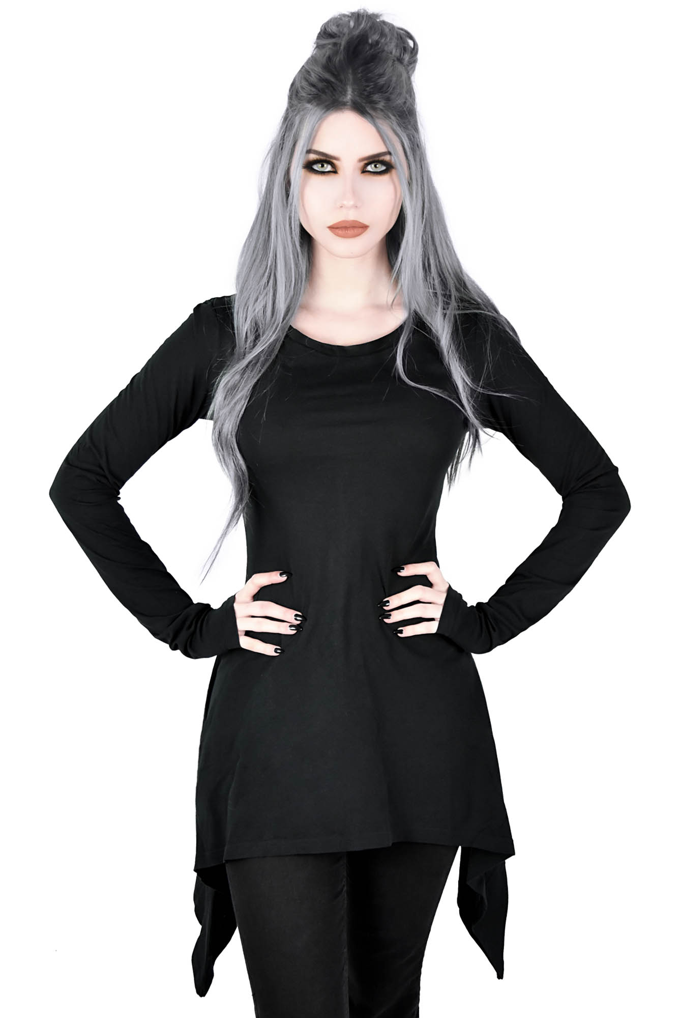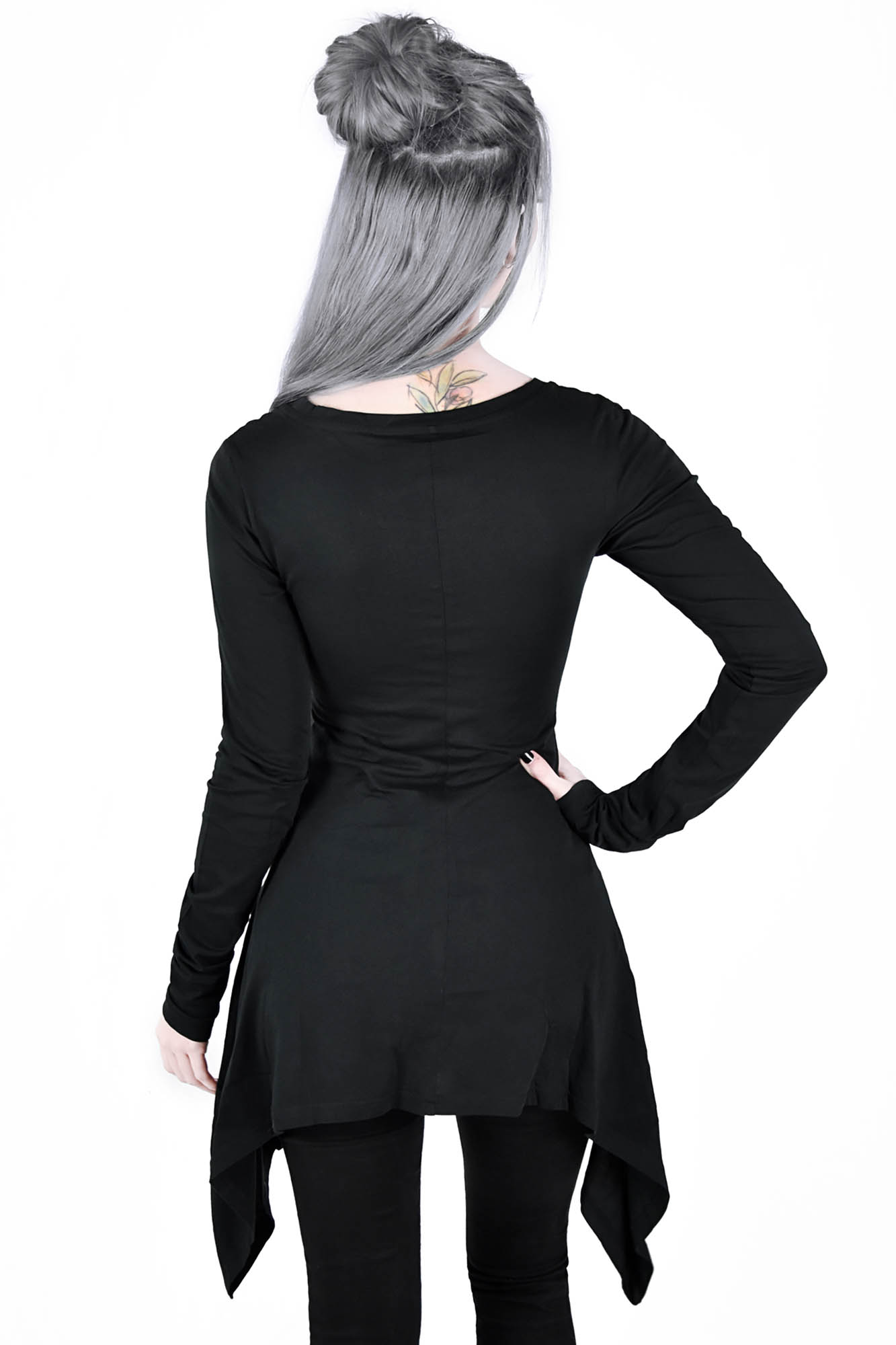 A perfect staple in any dark wardrobe - the 'Cora' long sleeve top is spun from super soft 100% cotton - featuring a fitted body with rounded neckline and accented with long tail sides. An essential piece - easy to wear and goes with anything!
